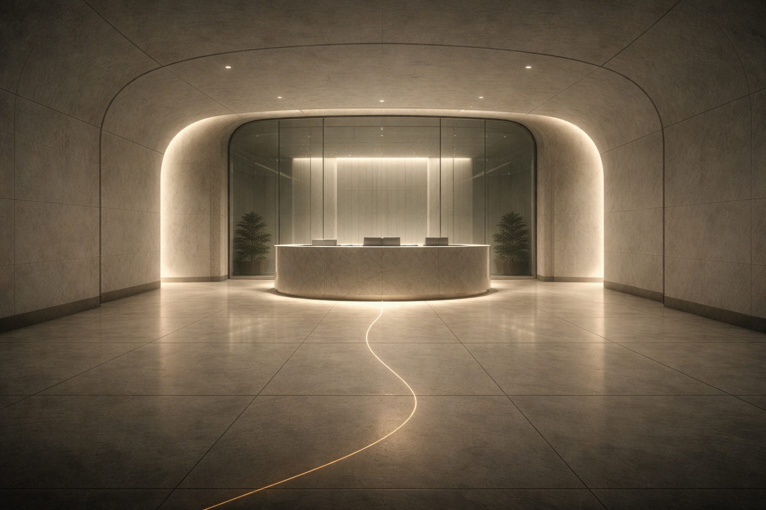 The floor was a grid of matte white stone, subtly warmed from below. The walls curved inward as if guiding me without signs to the receptionist. Everything glowed, but nothing seemed to emit light.